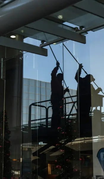 Lavado y pulido de vidrios en ventanas, puertas, vitrinas o fachadas, tanto en interiores como exteriores. Se utilizan productos y herramientas especializados para un acabado impecable.